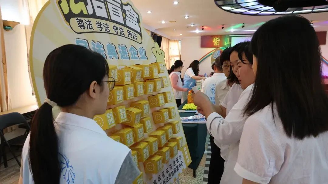活動現(xiàn)場,紫山職工有序排起長隊,紛紛體驗法治猜謎、法治盲盒、法治飛行棋、我與“民法典”合個影、法治大轉(zhuǎn)盤等精彩趣味的普法小游戲,紫山員工不僅學習了法律知識,也兌換了實用的普法宣傳小禮品。